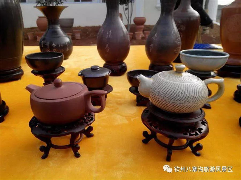 活動(dòng)內(nèi)容:1.欣賞欽州坭興陶大師現(xiàn)場(chǎng)拉胚、雕刻制作等工藝表演; 2.游客可現(xiàn)場(chǎng)學(xué)制作坭興陶,或選自己喜歡的圖案及內(nèi)容發(fā)給大師現(xiàn)場(chǎng)雕刻制作,燒制后郵寄購(gòu)買。