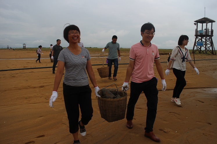 風(fēng)雨停歇之時(shí),第一、二黨支部全體黨員捋起袖子,提起垃圾筐,在黃金浴場(chǎng)上進(jìn)行“拉網(wǎng)式”清撿垃圾活動(dòng)?;顒?dòng)中,大家分工協(xié)作,團(tuán)結(jié)互助,忙得不亦樂乎,現(xiàn)場(chǎng)一片熱火朝天的景象。沙灘上的垃圾大多為煙蒂、石頭、礦泉水瓶等,考慮群眾在沙灘上大都赤腳走路,為了群眾的安全,黨員們將沙灘上的貝殼也都一并清撿,清除貝類劃傷的風(fēng)險(xiǎn)。其中一位老黨員向大家說到:“大家一定不要覺得清潔活動(dòng)就只是單純地?fù)炖?,我們撿的可都?lsquo;黃金’啊,別看小小一個(gè)煙蒂,我們把它撿起來了,環(huán)境就美了,群眾就會(huì)更加自覺了,那么誰也不舍得扔下手中的這枚‘黃金’了。所以,我們黨員今天的清潔行動(dòng)不僅是推行群眾文明出行的理念,更是引導(dǎo)群眾自覺保護(hù)環(huán)境,關(guān)愛自然,從而讓清潔、環(huán)保成為每個(gè)人的責(zé)任。”老黨員看似平淡的話語,卻是對(duì)我們的諄諄教導(dǎo),進(jìn)一步激發(fā)了我們身為一名共產(chǎn)黨員的責(zé)任感和使命感,同時(shí)也讓我們深刻認(rèn)識(shí)到生態(tài)環(huán)境建設(shè)和保護(hù)迫在眉睫。