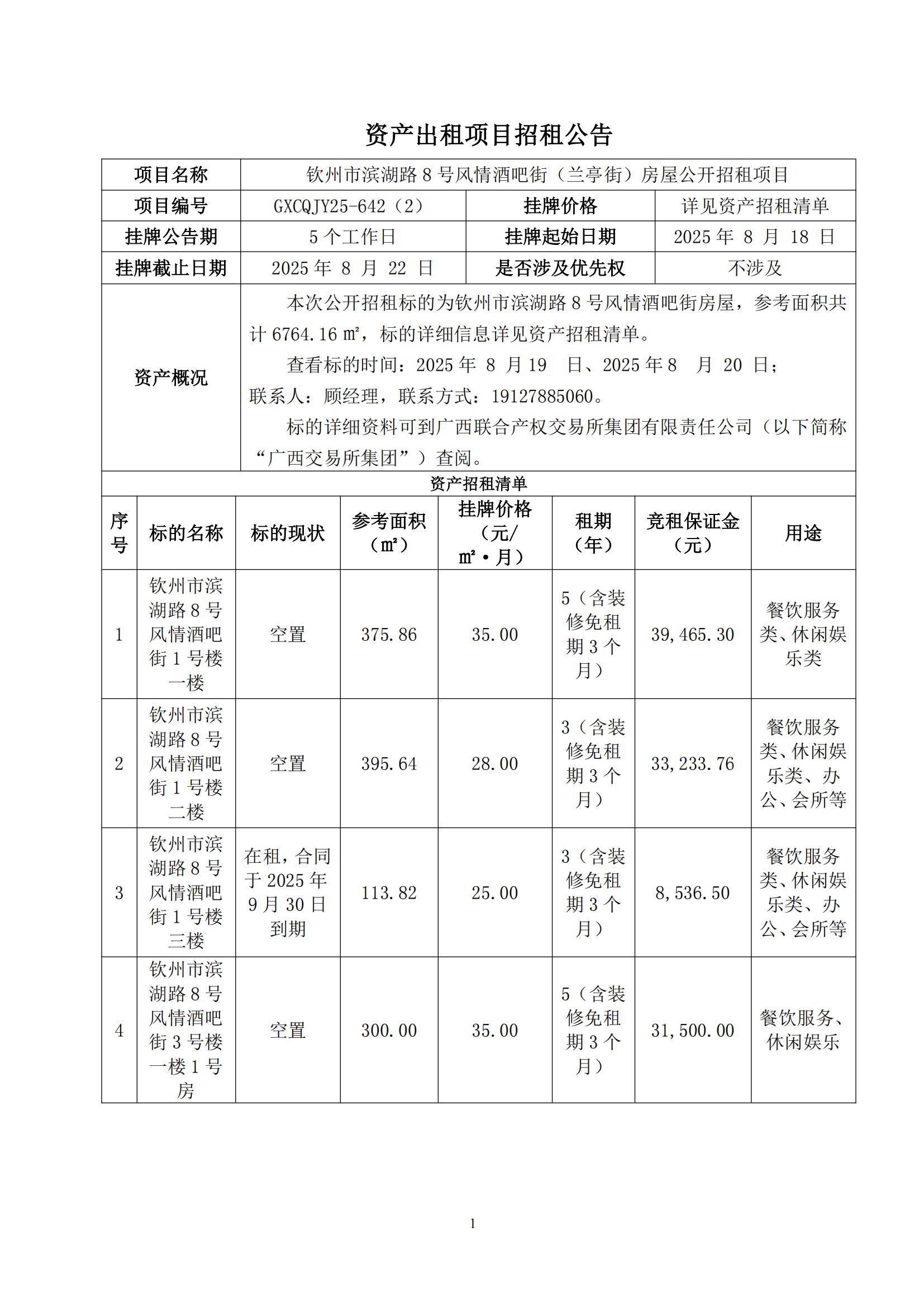資產(chǎn)出租項目招租公告