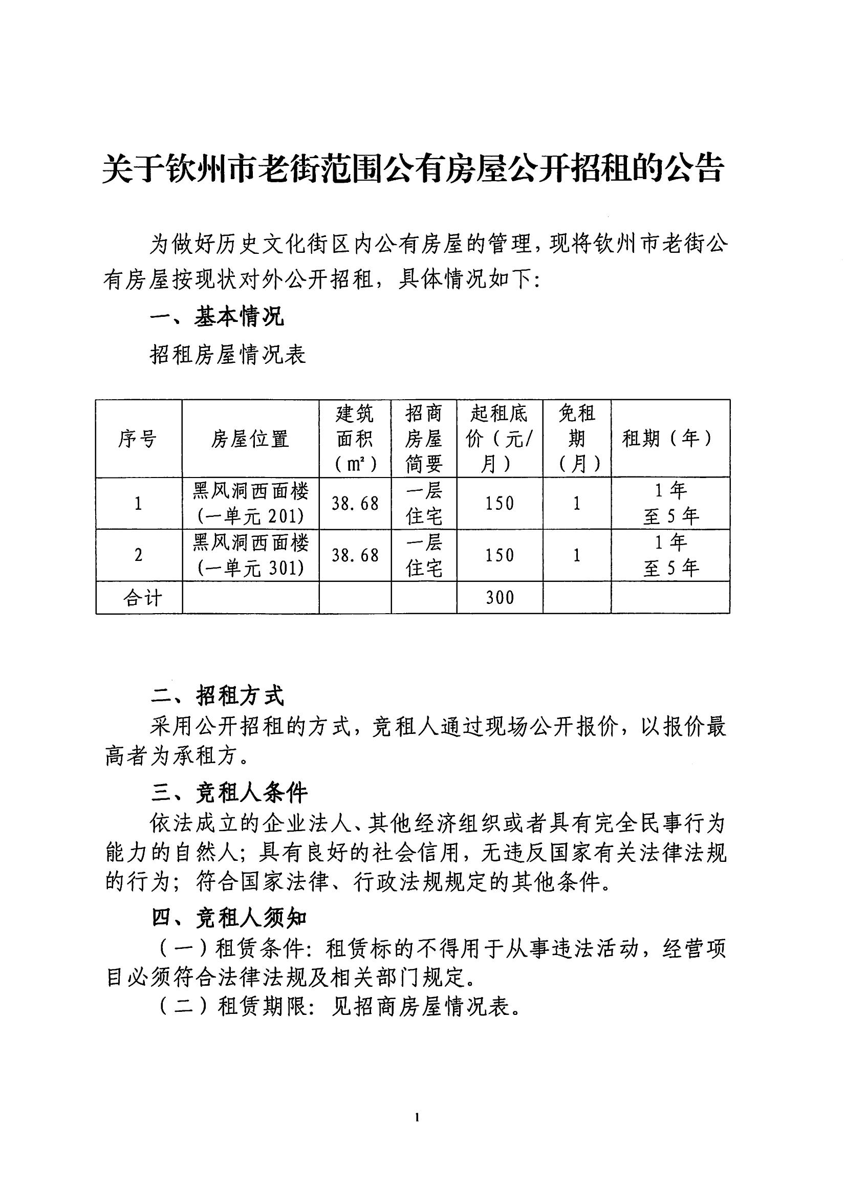 關(guān)于欽州市老街范圍2處公房公開招租結(jié)果公示