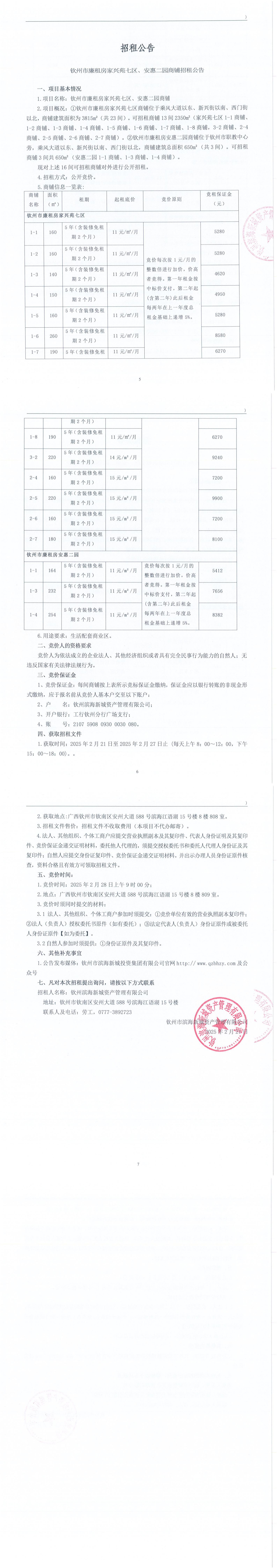欽州市家興苑七區(qū)、安惠二園商鋪招租項目成交結果公告