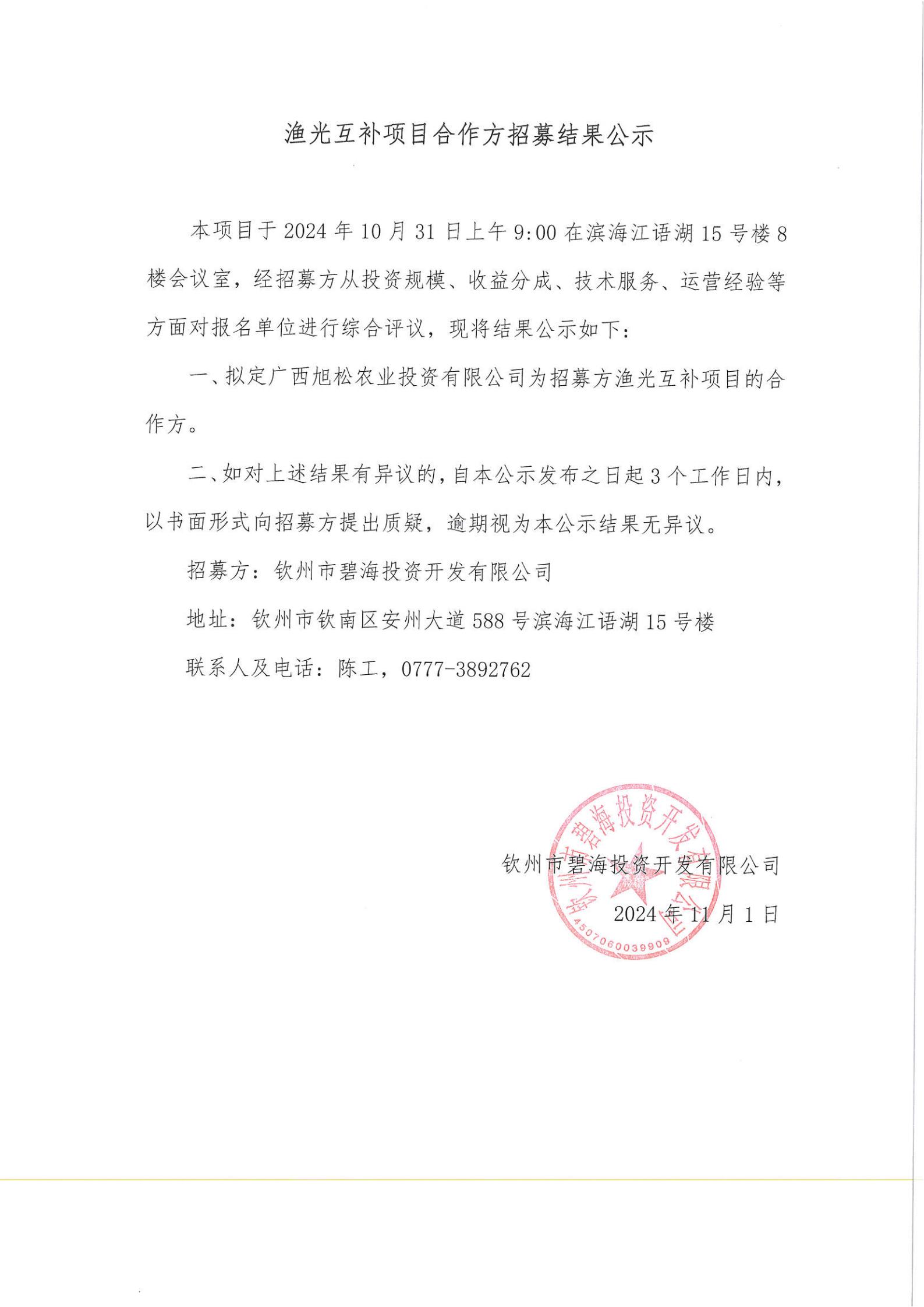 漁光互補(bǔ)項(xiàng)目合作方招募結(jié)果公示