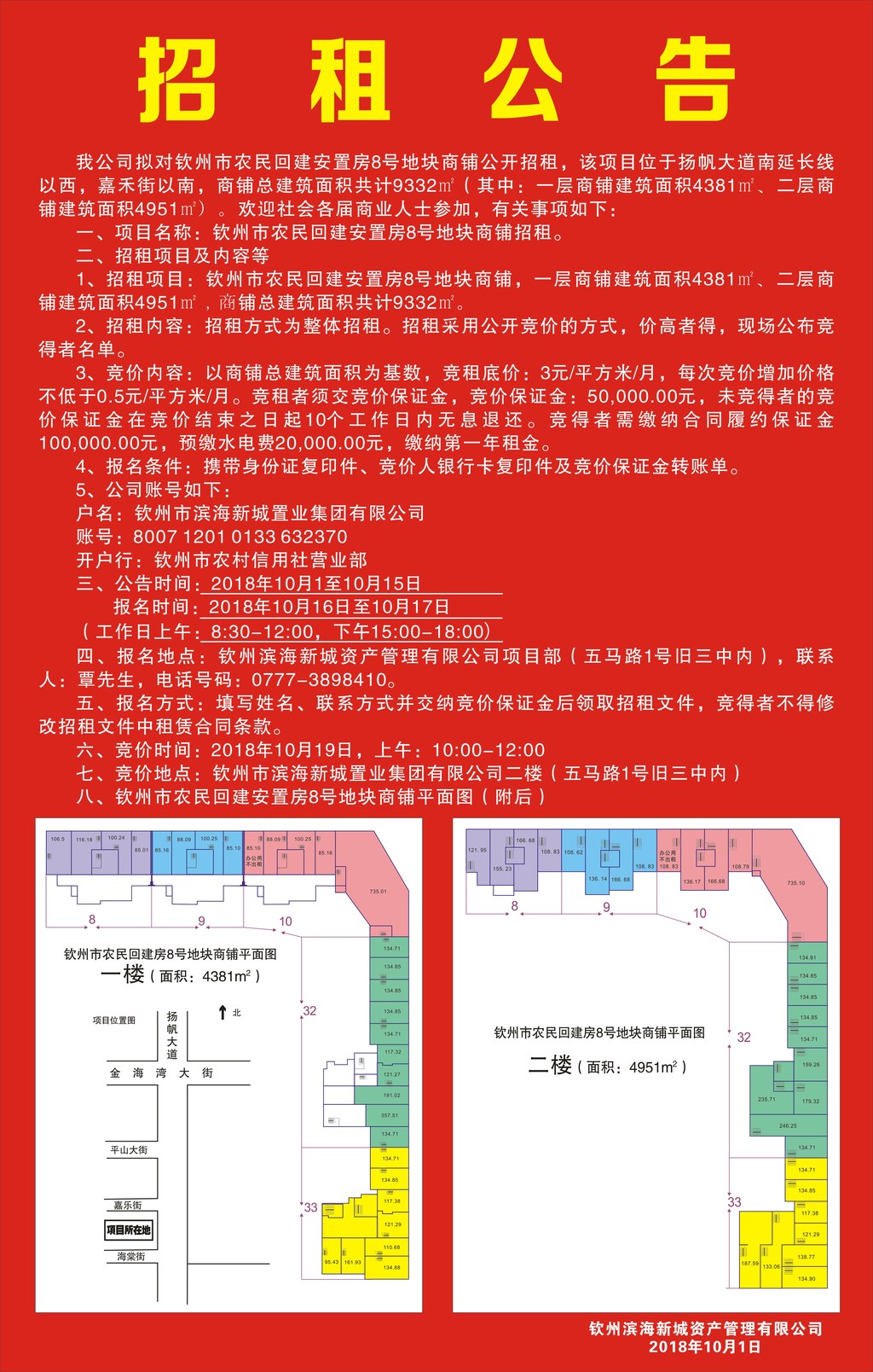 • 欽州市農民回建安置房8號地塊商鋪招租公告