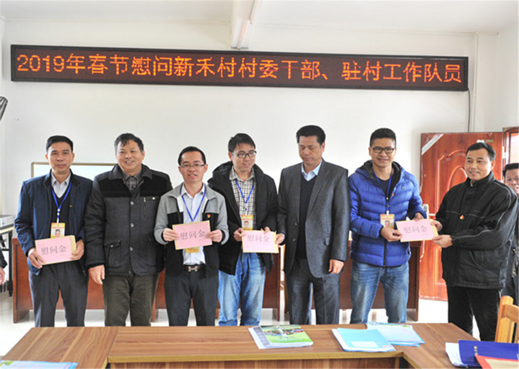會后,幫扶后盾單位一同對新禾村村干部、駐村工作隊員進行慰問。各單位幫扶干部向村干部送上食用油、大米、面等慰問品,對村干部在扶貧及其他各項工作方面所做的突出成績以及他們?nèi)蝿谌卧狗?wù)人民的公仆精神表以由衷的敬意和感謝。同時,還向駐村工作隊員送上了慰問金,對工作隊員們克服困難、堅守崗位、認真履職,全力做好駐村各項工作給予贊賞,并希望工作隊員以更加堅決的態(tài)度、更加有力的措施、更加嚴明的紀律、更加務(wù)實的作風(fēng),扎扎實實把脫貧攻堅各項任務(wù)落到實處。