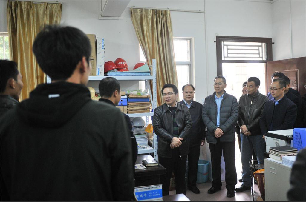 圖為蒙啟鵬副市長(zhǎng)(左一)、鄭豪斌副秘書(shū)長(zhǎng)(左三)在集團(tuán)公司建設(shè)管理部看望干部職工。
