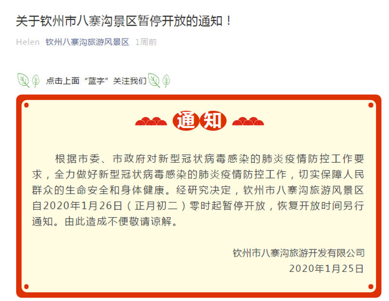 為進(jìn)一步加強(qiáng)八寨溝景區(qū)新型冠狀病毒感染的肺炎疫情防控工作,有效防止疫情經(jīng)旅游途徑傳播,切實(shí)保障游客及......