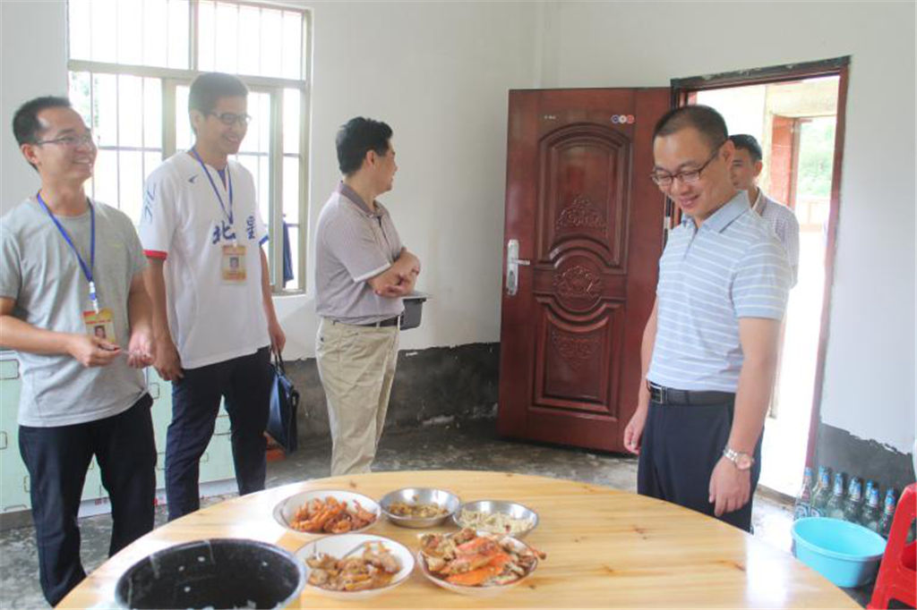 (圖為趙文博董事長參觀駐村隊員廚房的內(nèi)外環(huán)境)