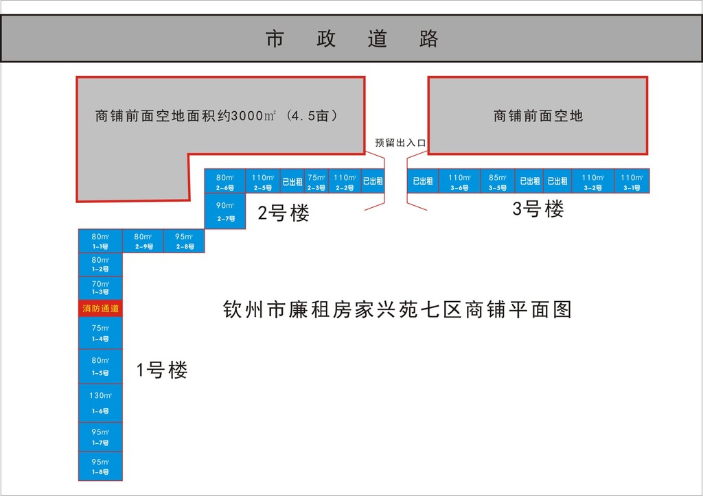 1.本次招租的項目是欽州市廉租房家興苑七區(qū)商鋪,此次招租商鋪共18間,總建筑面積3175㎡,商鋪結(jié)構(gòu)分為上下兩層,其中2-8、2-9號商鋪一層,建筑面積分別為80㎡—220㎡。