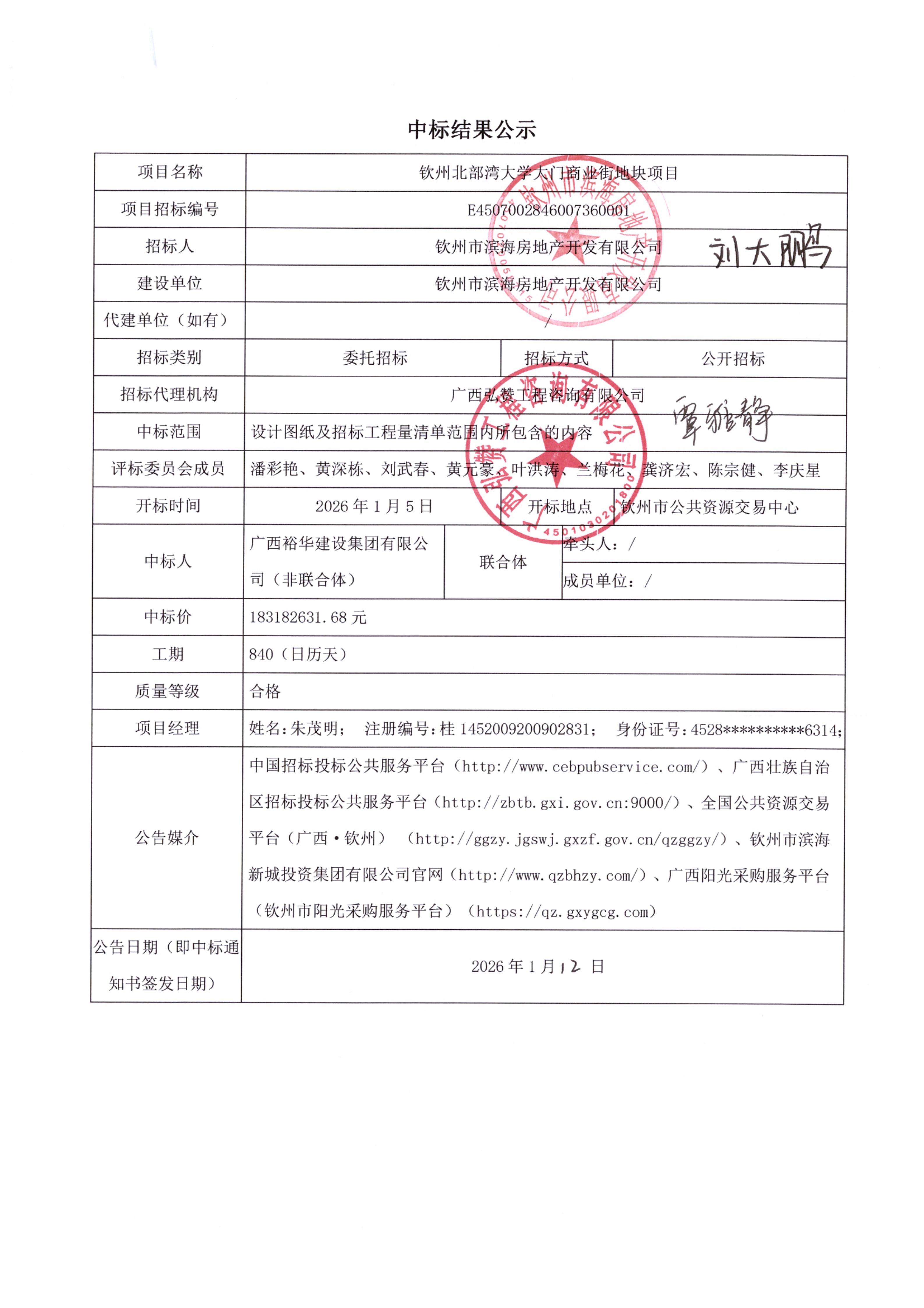 欽州北部灣大學大門商業(yè)街地塊項目(中標結果公示)