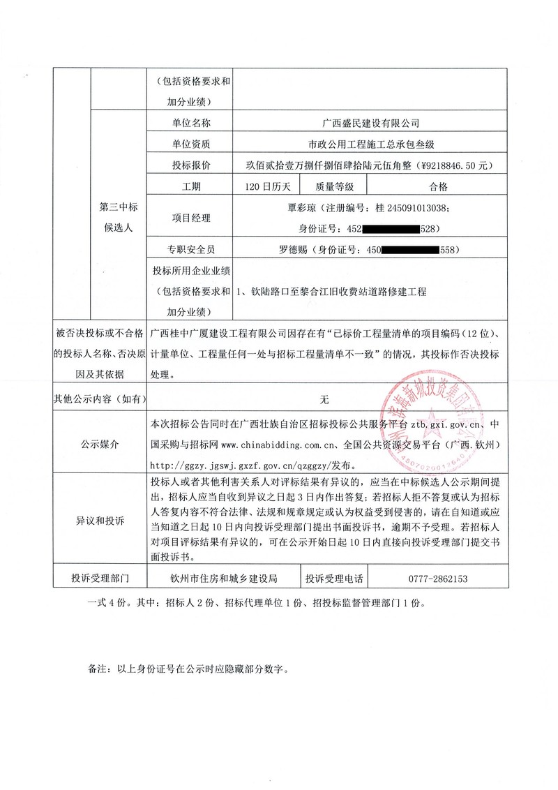 欽州市老舊城區(qū)改造提升項(xiàng)目中山路、占鰲巷道路改造及占鰲巷8號房屋加固修繕工程-中標(biāo)候選人公示