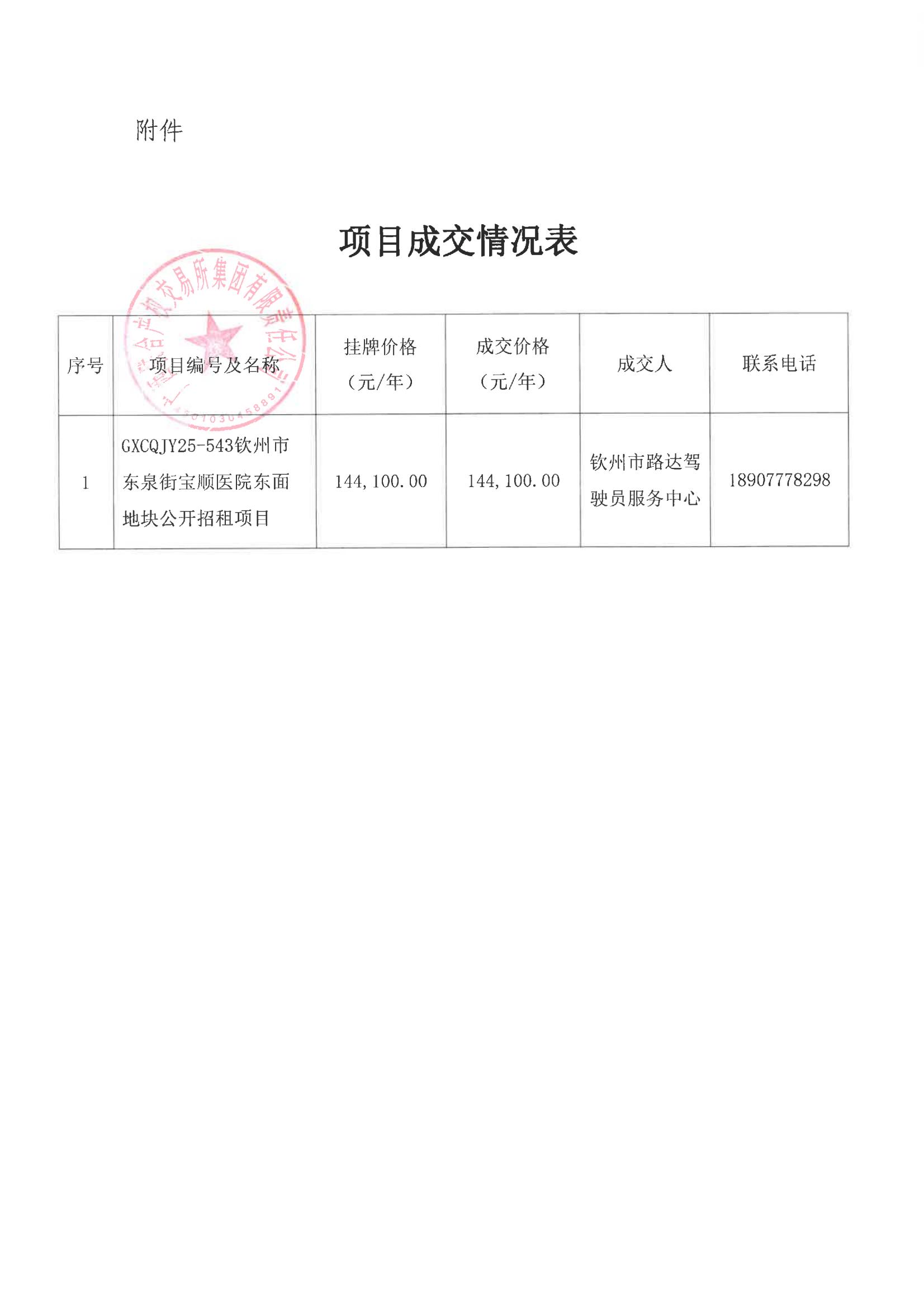 關(guān)于欽州市東泉街寶順醫(yī)院東面地塊公開招租項(xiàng)目成交情況的函
