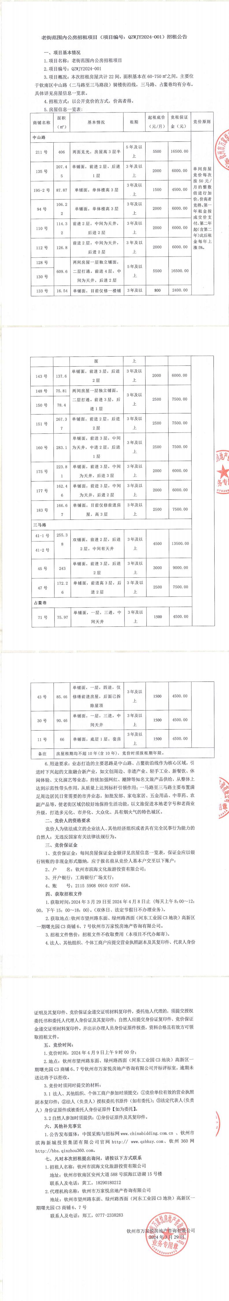 關(guān)于欽州市老街范圍中山路騎樓街沿線及人民路、三馬路、占鰲巷30間商鋪整體公開招租的公告