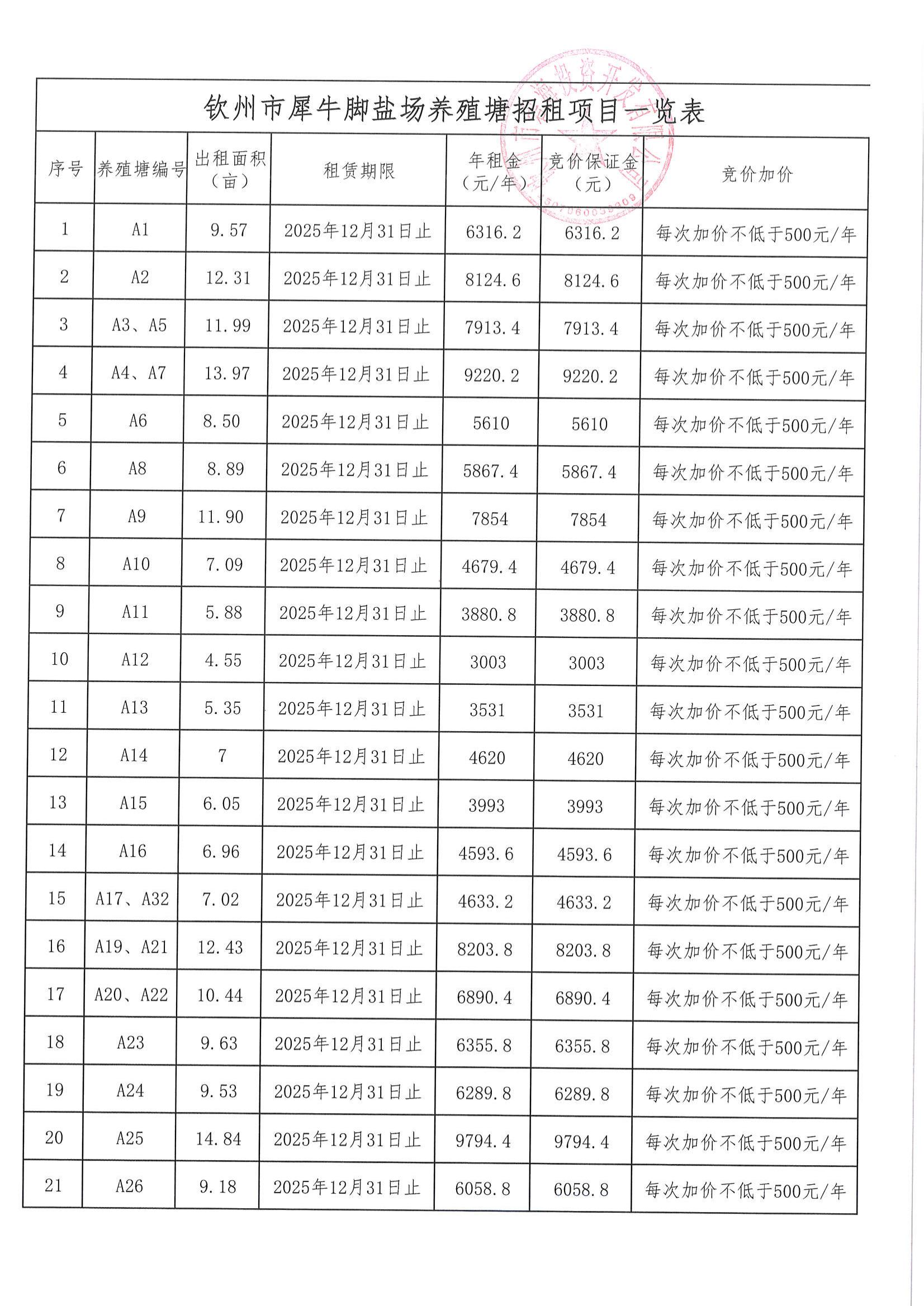 關(guān)于犀牛腳鹽場(chǎng)養(yǎng)殖塘公開招租的公告